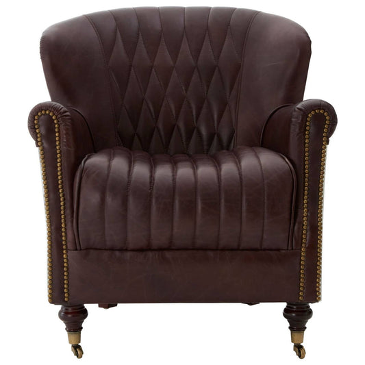 Victor Brown Leather Armchair with Button Tufted Back